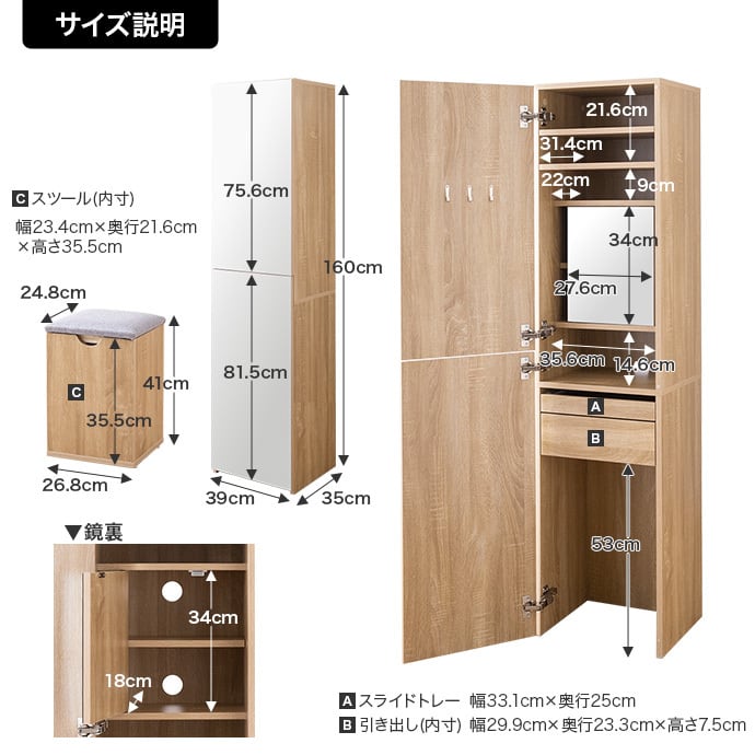 商品名:【幅39cm】Choa 姿見ドレッサー