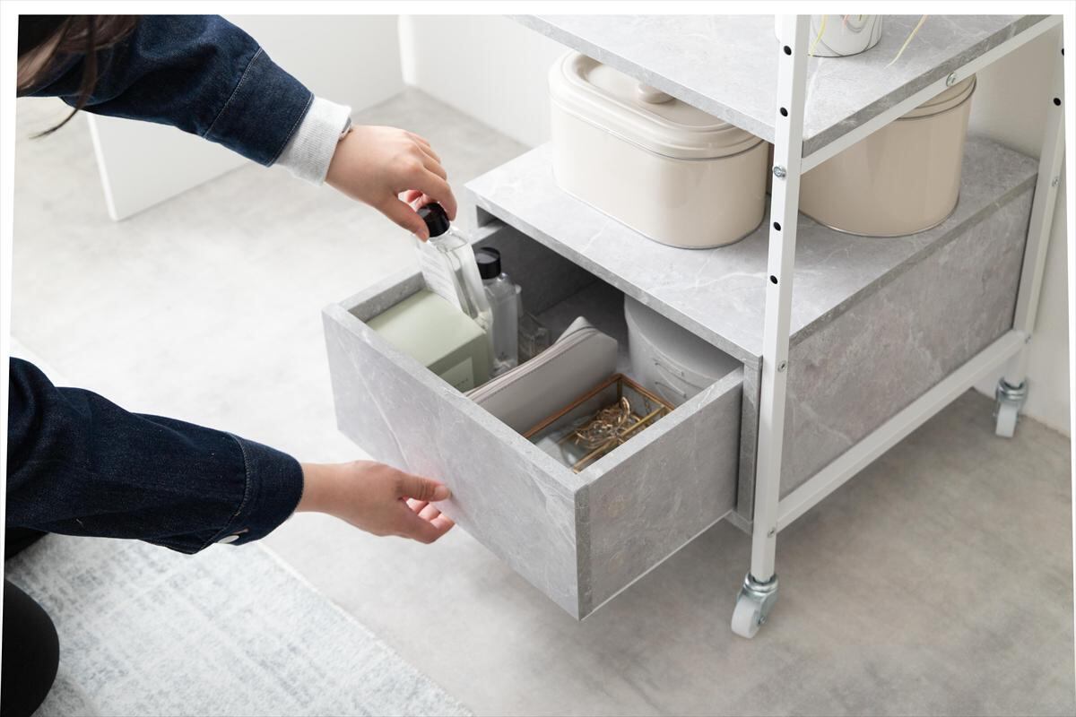 引き出し付きで、靴や小物を収納するのに便利なデザインです。耐久性に優れた素材を使用しており、長くご愛用できるアイテムとなっています。