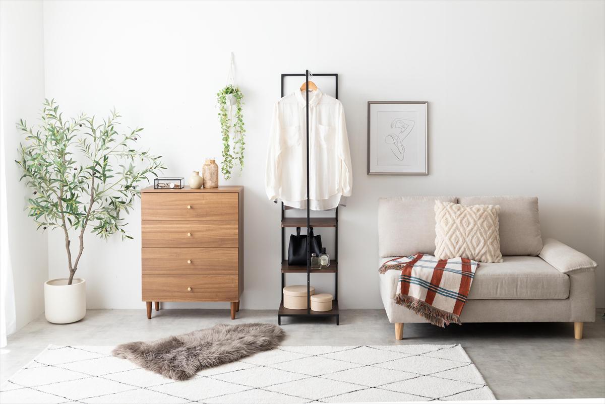 機能的で洗練された『Tito 棚付きスリムハンガーラック』で、スタイリッシュな収納空間を実現してみませんか。スタッフ一同、心よりお待ちしております。