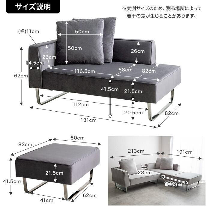 ○サイズ:【ソファ】幅131cm×奥行82cm×高さ62cm(座面高:41.5cm)