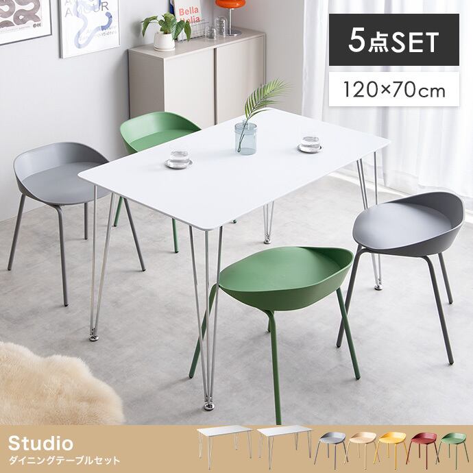 【5点セット】Studio 幅120cm ダイニングテーブル+ダイニングチェア4脚