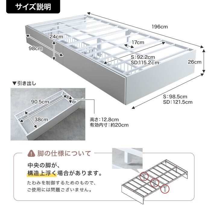 【耐荷重】床板:約120kg、引き出し:約5kg
