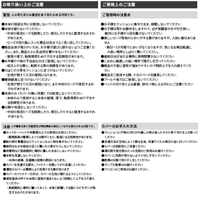 ビーズが自由に形を変え、もたれることで安心感を与えます。また、読書や映画鑑賞の時にも頼れるパートナーとなり、心地よい時間をお楽しみいただけます。さらに、アウターカバーは洗濯可能なので、清潔感を保ちつつ、長くご愛用いただけます。