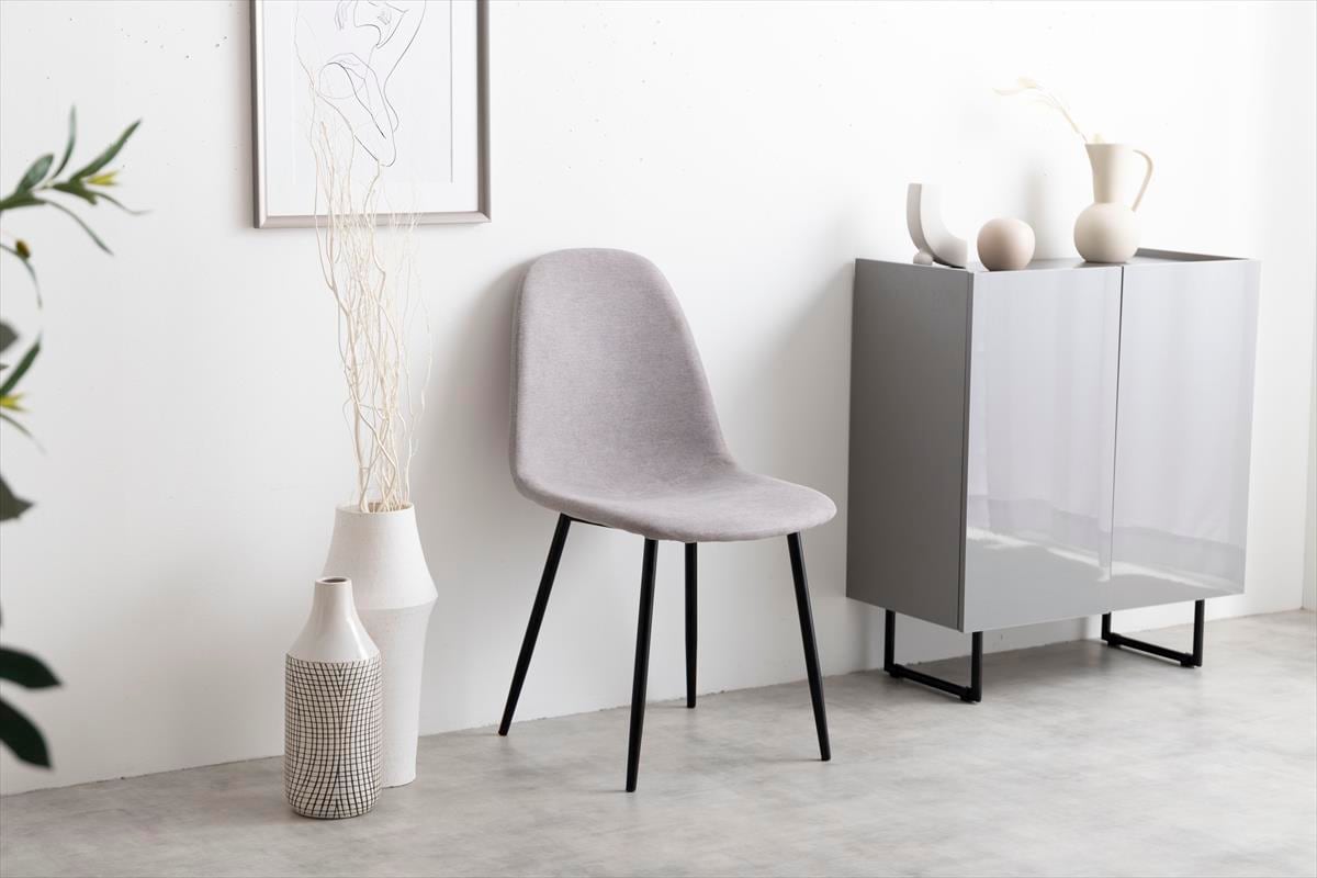シンプルでありながらも温かみのあるファブリック素材を使用したこのダイニングチェアは、長時間座っても疲れにくい設計がされています。ダイニングテーブルと組み合わせることで、快適な食事のひとときを提供し、さらに落ち着いた色合いが居心地の良い空間を演出します。