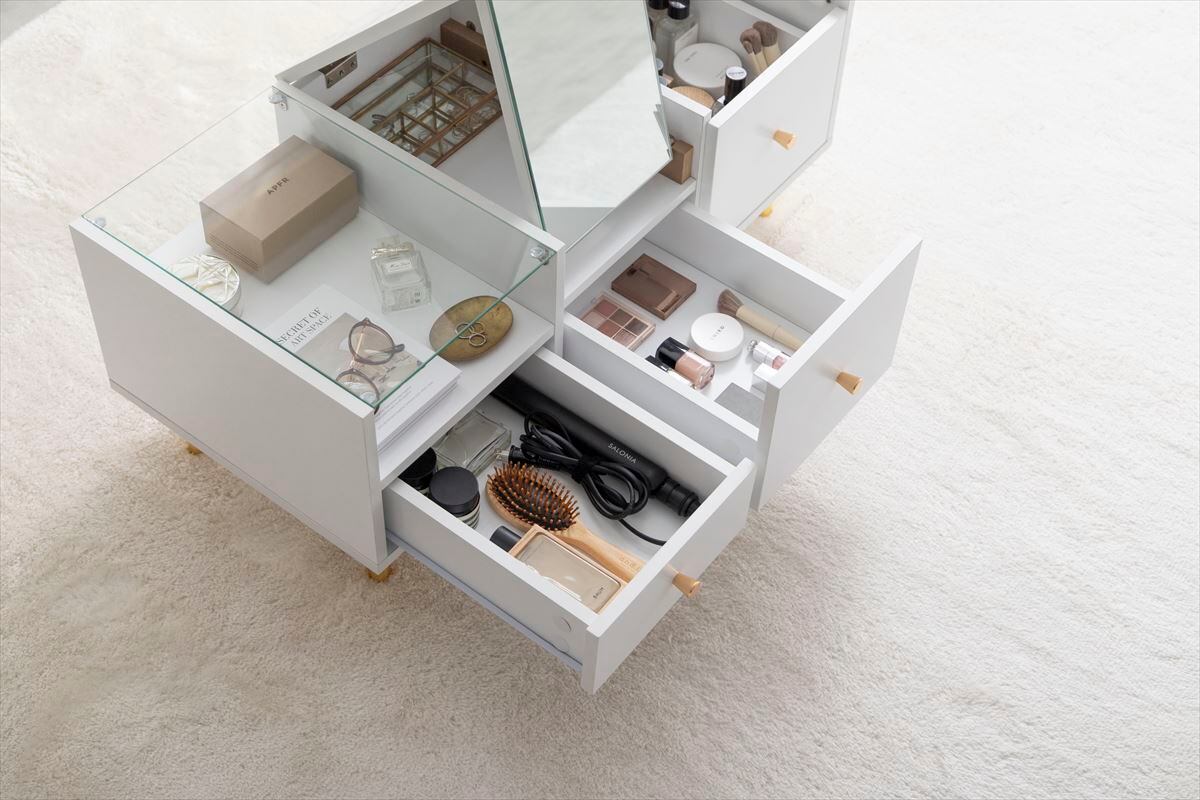 『Camila ドレッサーテーブル』は、機能的でありながら洗練されたデザインが特徴のドレッサーです。忙しい朝のメイクアップやおしゃれを楽しむ時間を、より充実したものにしてくれるアイテムで、日常使いにぴったりな一品です。