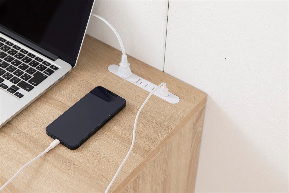 【幅80cm】Lino コンセント・引き出し付きデスク